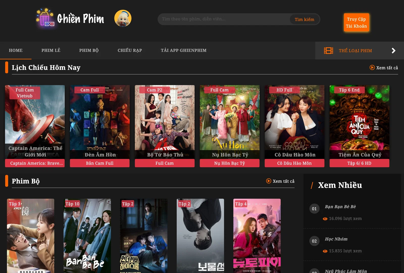 So với Ghienphim, vốn có giao diện đơn giản nhưng chưa thực sự tối ưu trong việc tìm kiếm phim, CayTv.tv mang đến một trải nghiệm mượt mà hơn nhờ vào thiết kế giao diện trực quan, khoa học, giúp người dùng dễ dàng tiếp cận và lựa chọn nội dung yêu thích. Với thanh tìm kiếm thông minh và hệ thống danh mục phim được sắp xếp hợp lý, CayTv.tv giúp khán giả nhanh chóng tìm thấy bộ phim mong muốn mà không mất nhiều thời gian.